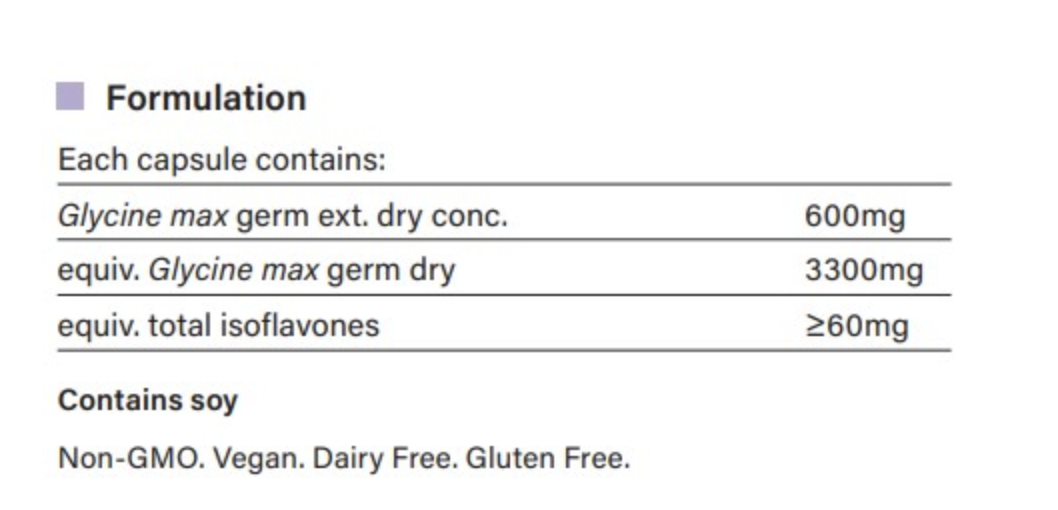 For additional information please refer to Techsheet for Oestro-ISO standardised soy isoflavone supplement