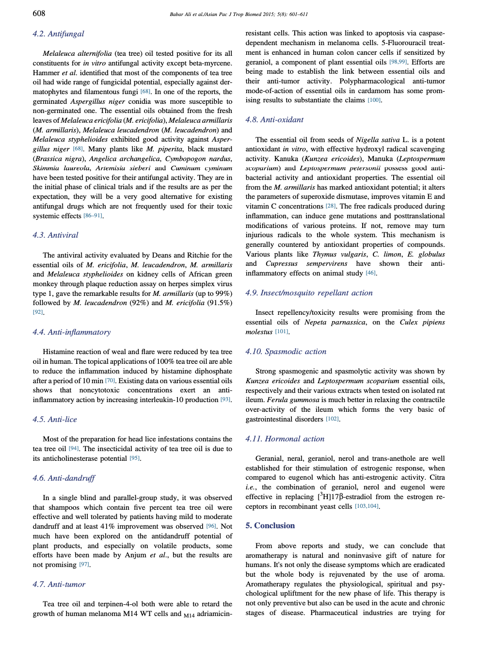 Aromatherapy essential oils uses, therapeutic applications, safety - systematic literate review 2015